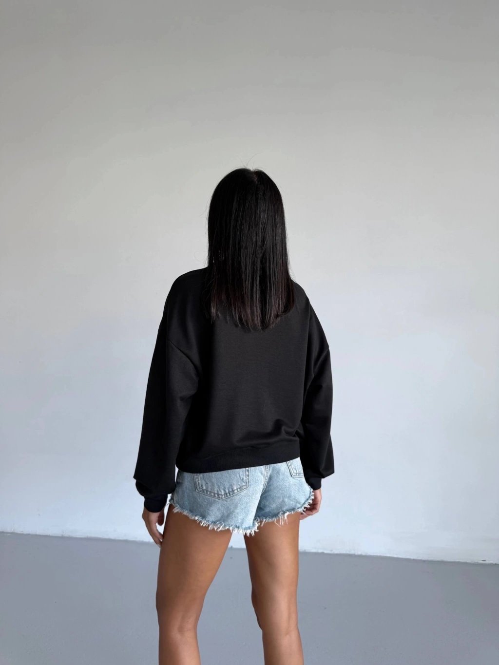 2 iplik bisiklet yaka sweat siyah f2339