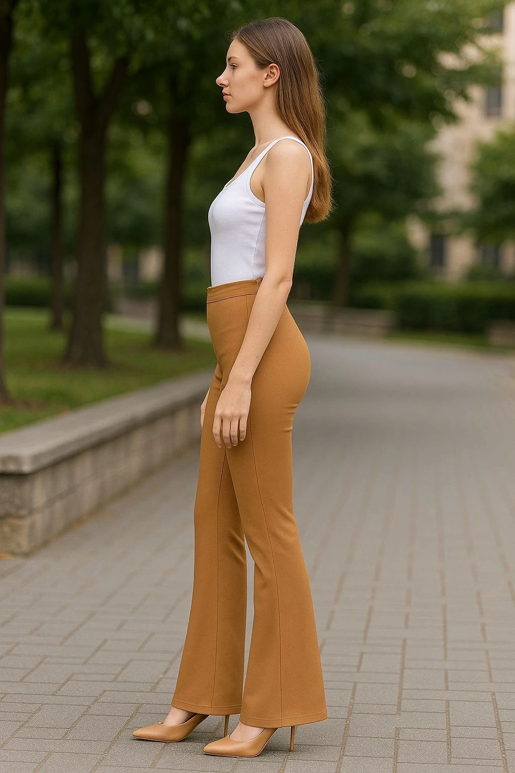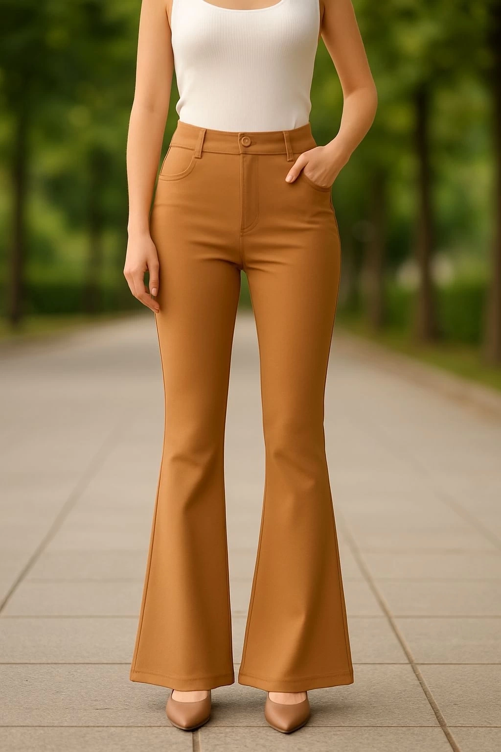 Yüksek bel kesimi ile vücudu saran ve uzun bir görünüm sağlayan palazzo pantolon, her bedene uyum sağlar.