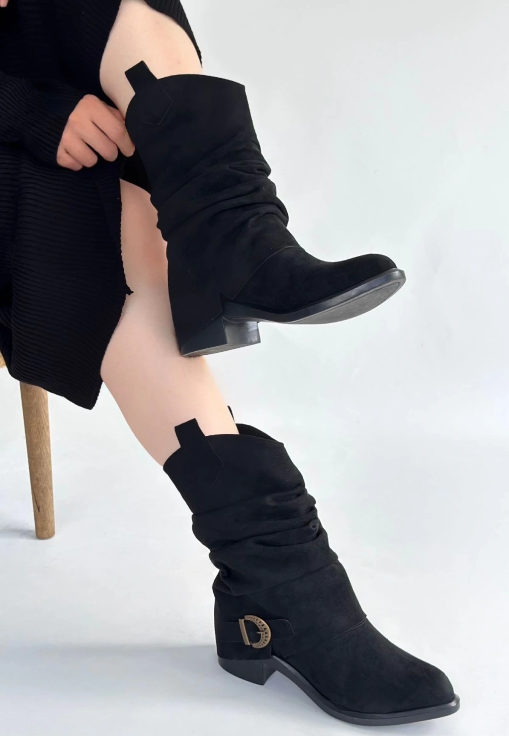Canty Siyah Süet Körüklü Topuklu Çizme