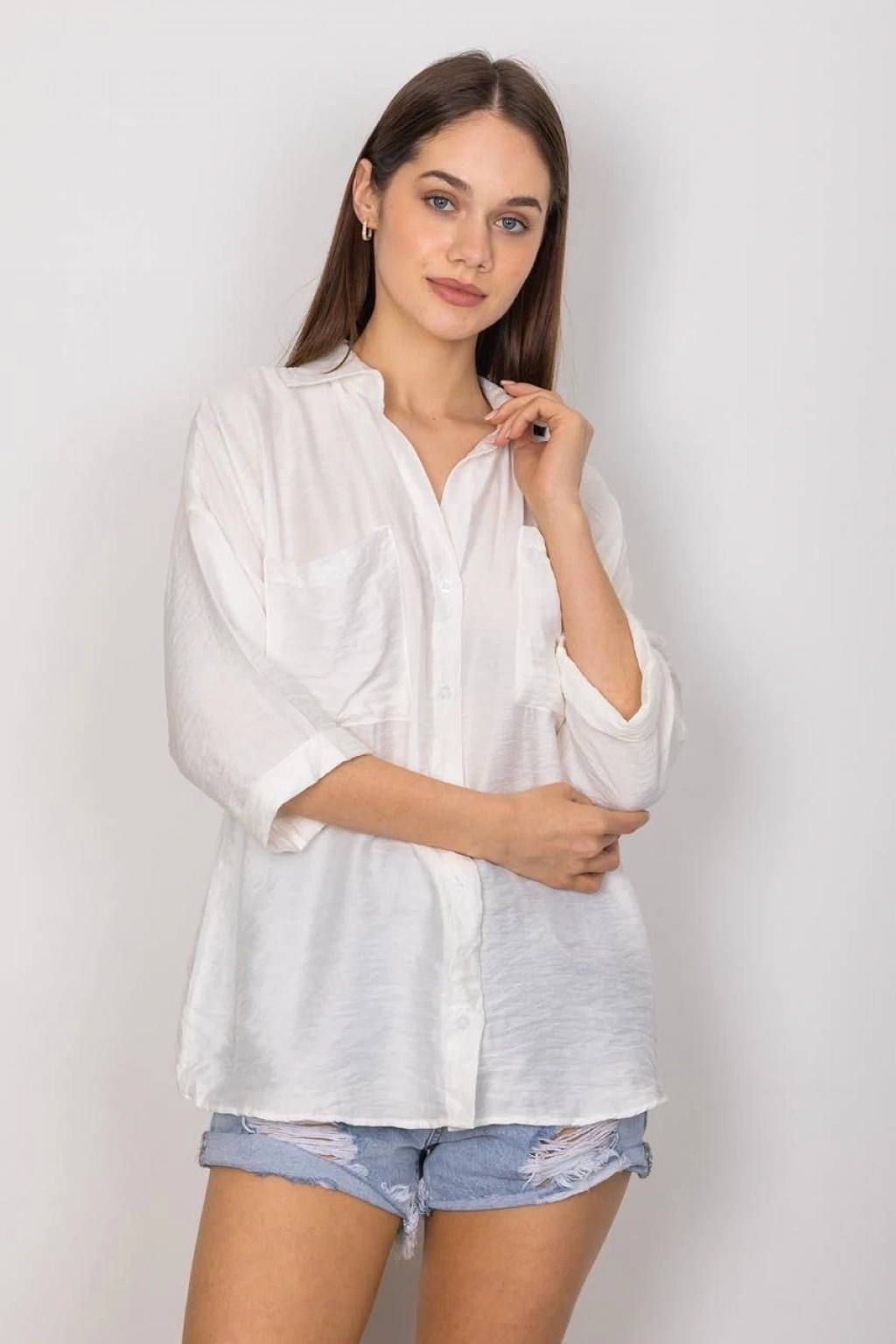 Şıklığı seven kadınların gardırobunda mutlaka bulunması gereken bir parçadır. T1010 Cepli Salaş Gömlek ile hem günlük hayatta hem de özel günlerde şık ve rahat bir görünüme sahip olabilirsiniz.