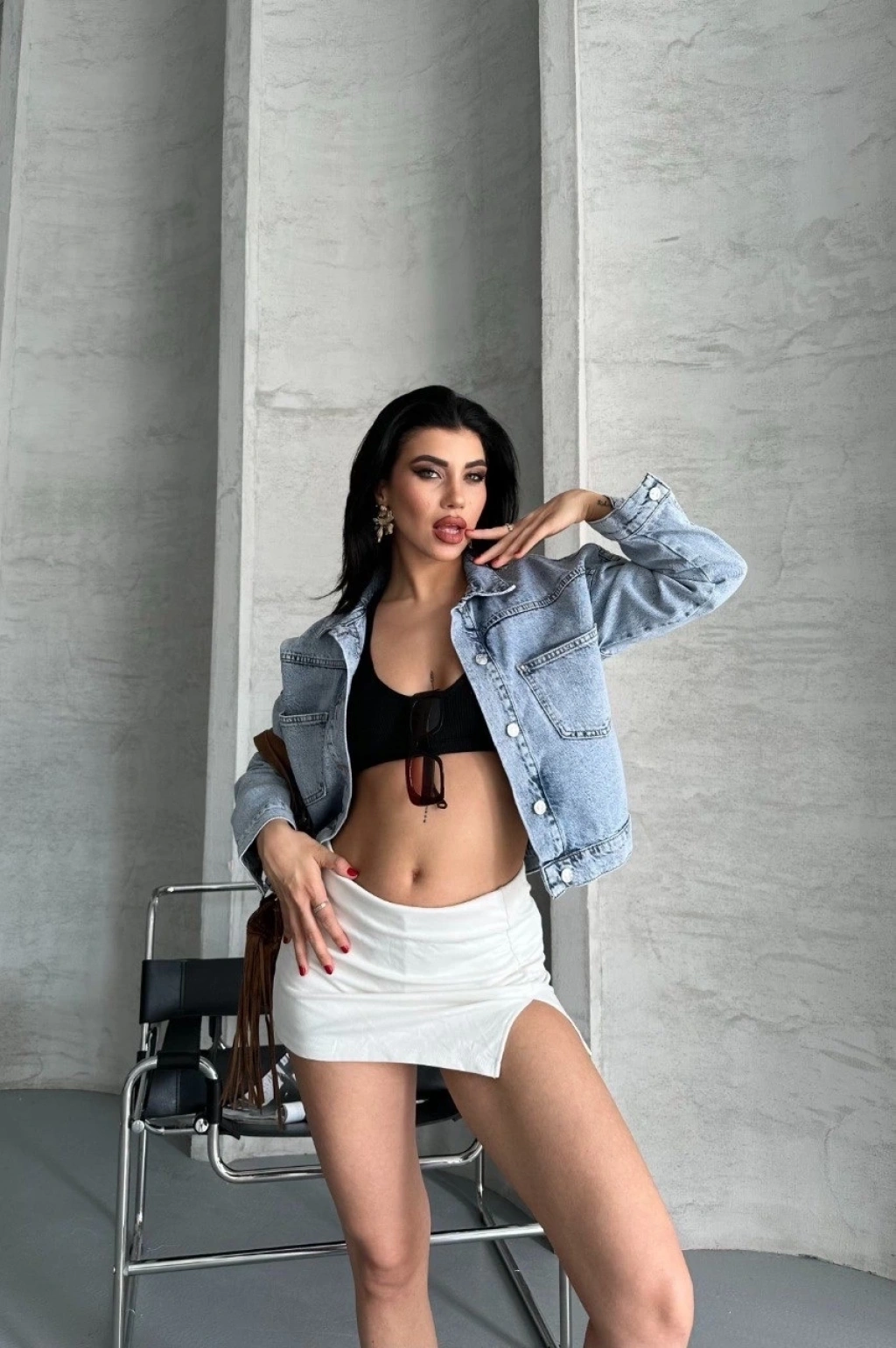 Modern tasarımıyla öne çıkan Çift Cepli Kol Katlamalı Kar Yıkama Crop Kot Ceket Buz Mavi D2000, gardırobunuzun vazgeçilmez parçalarından biri olmaya aday.