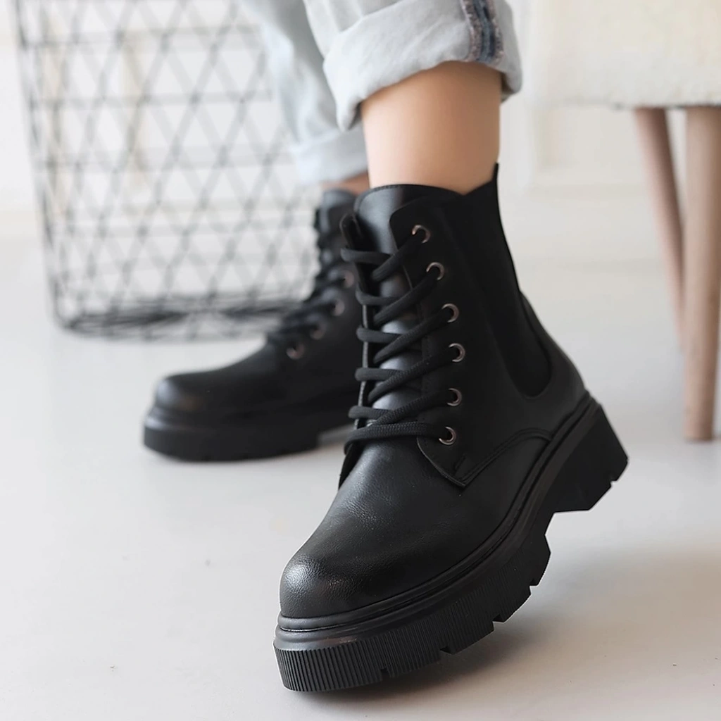 Detay : Topuklu Yandan Fermuarlı Lastikli Bağcıklı Bot