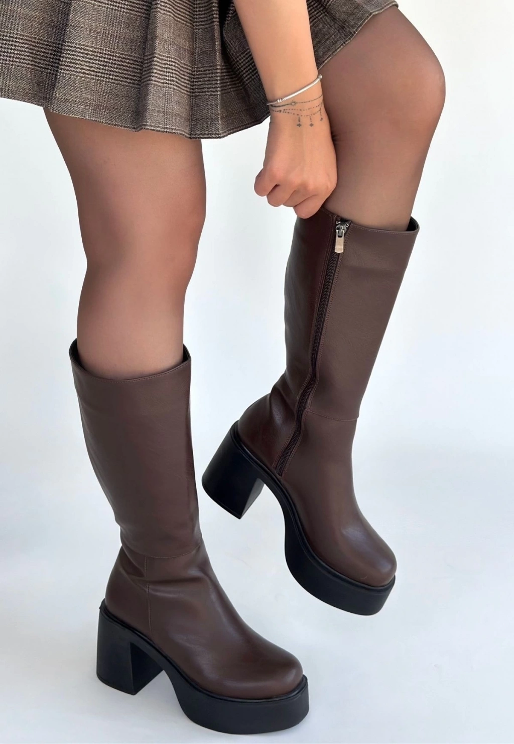 • Disan Kahverengi Cilt Topuklu Çizme