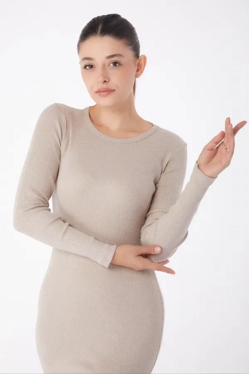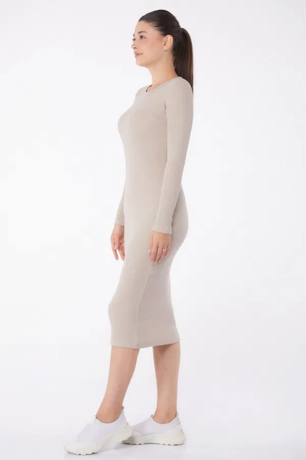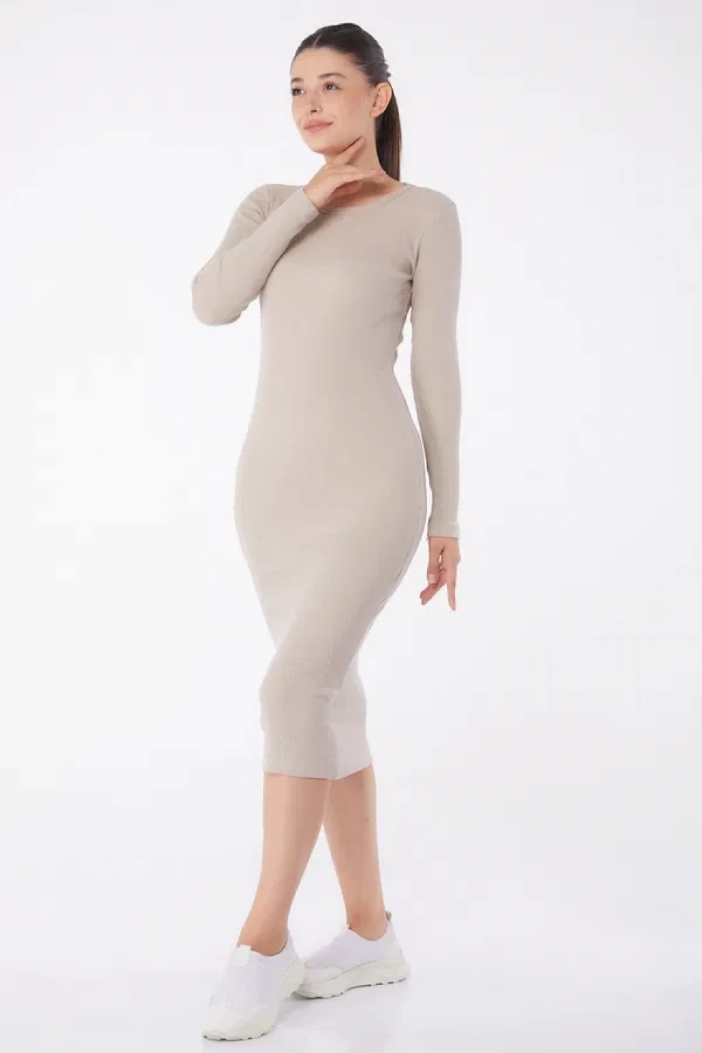 Düz Bisiklet Yaka Kadın Midi Elbise