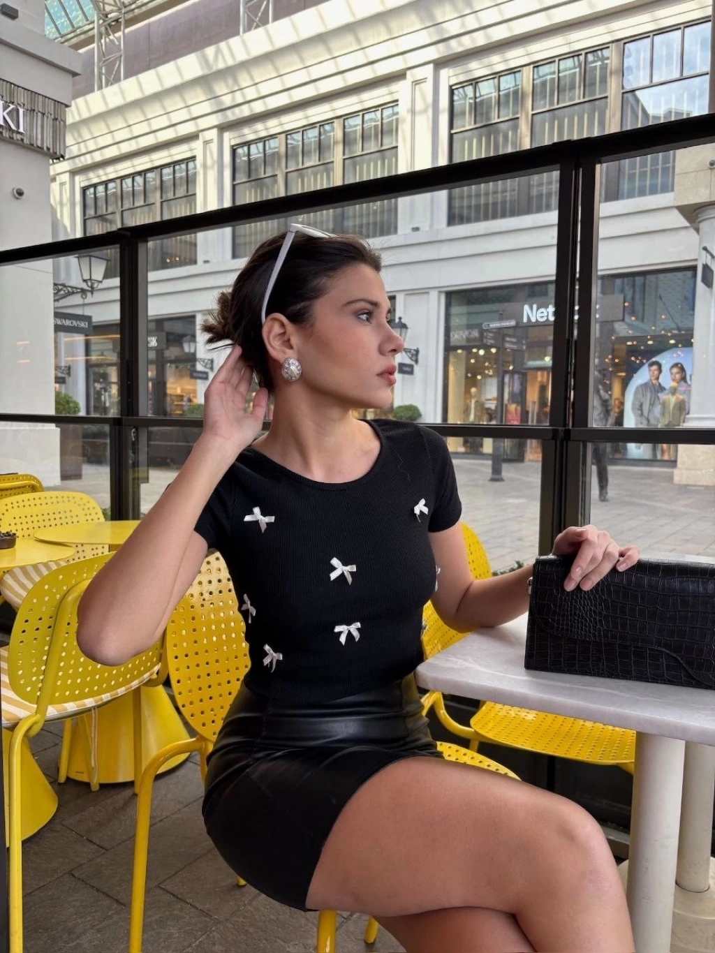 Bağcıklı fiyonk detayıyla feminen bir görünüm kazandırır.