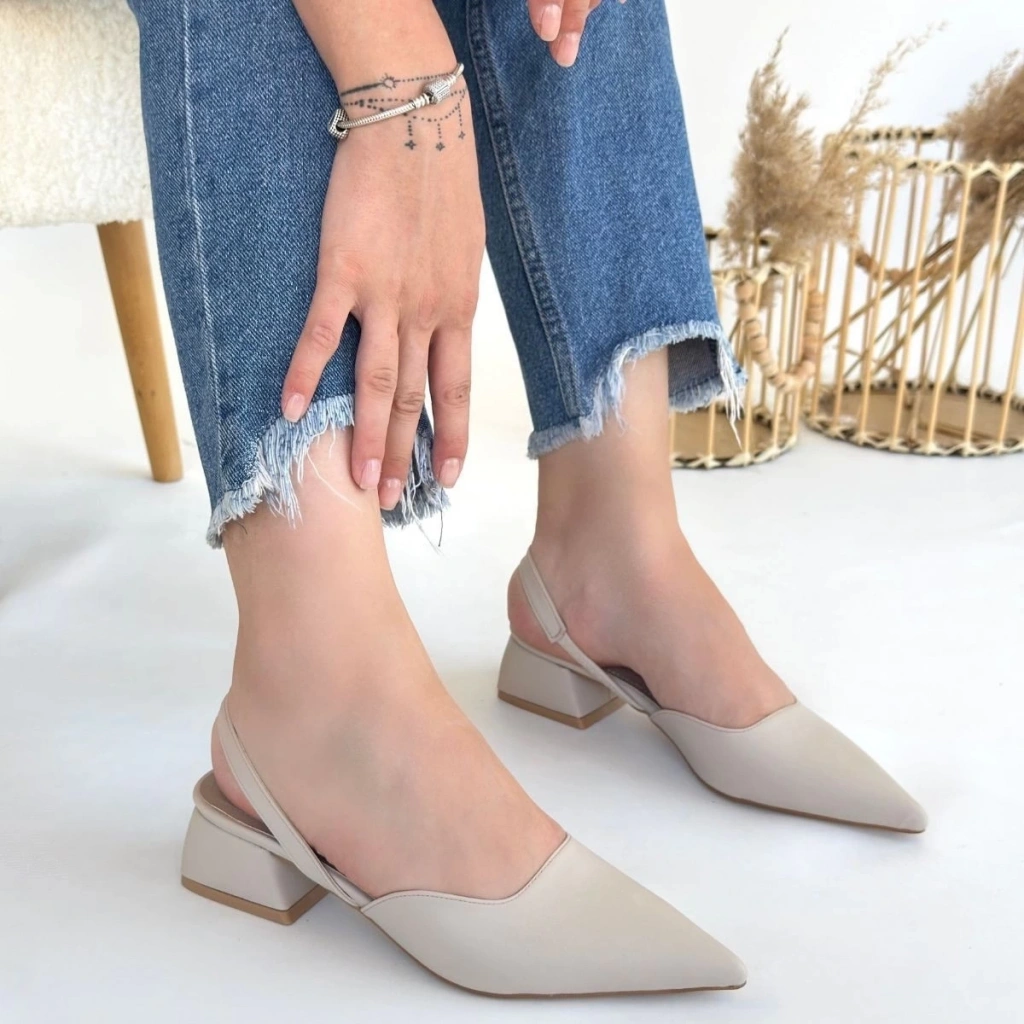 • Jenti Bej Cilt Topuklu Ayakkabı