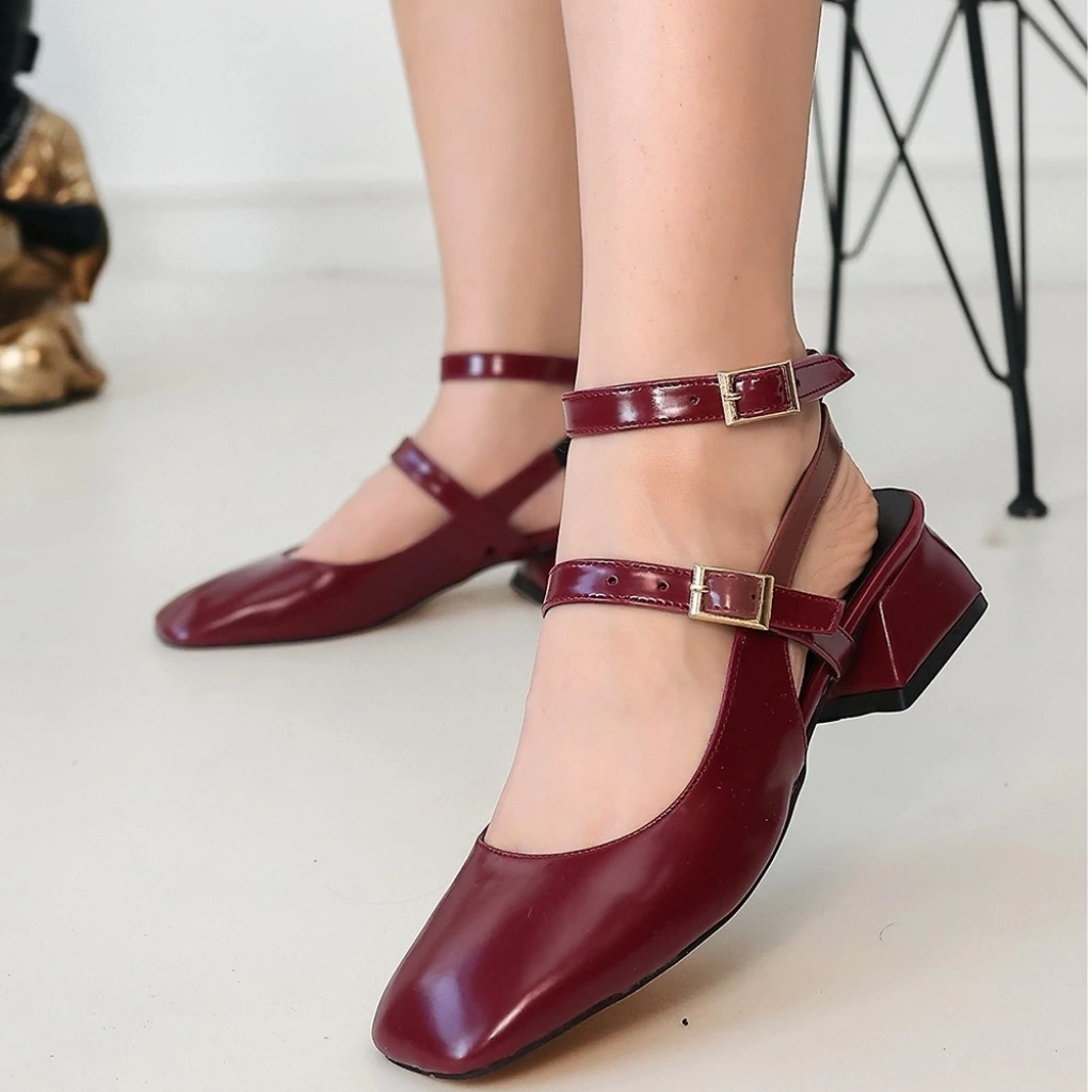 • Karmi Mürdüm Cilt Topuklu Ayakkabı