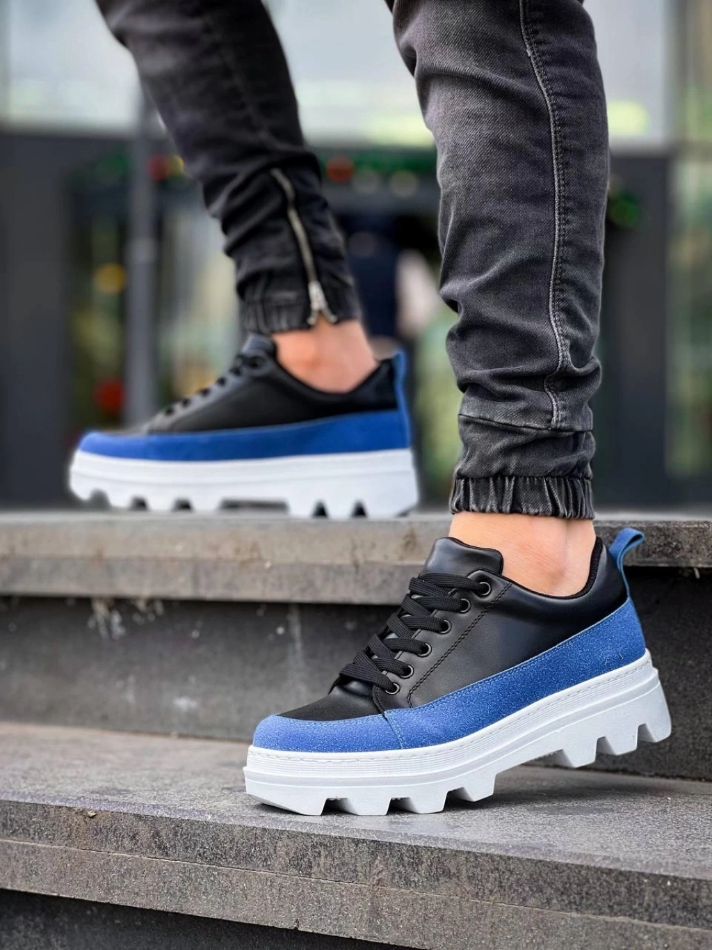 • KB-056 Kuback Siyah Mavi Detaylı Beyaz Yüksek Taban Günlük Spor Ayakkabı