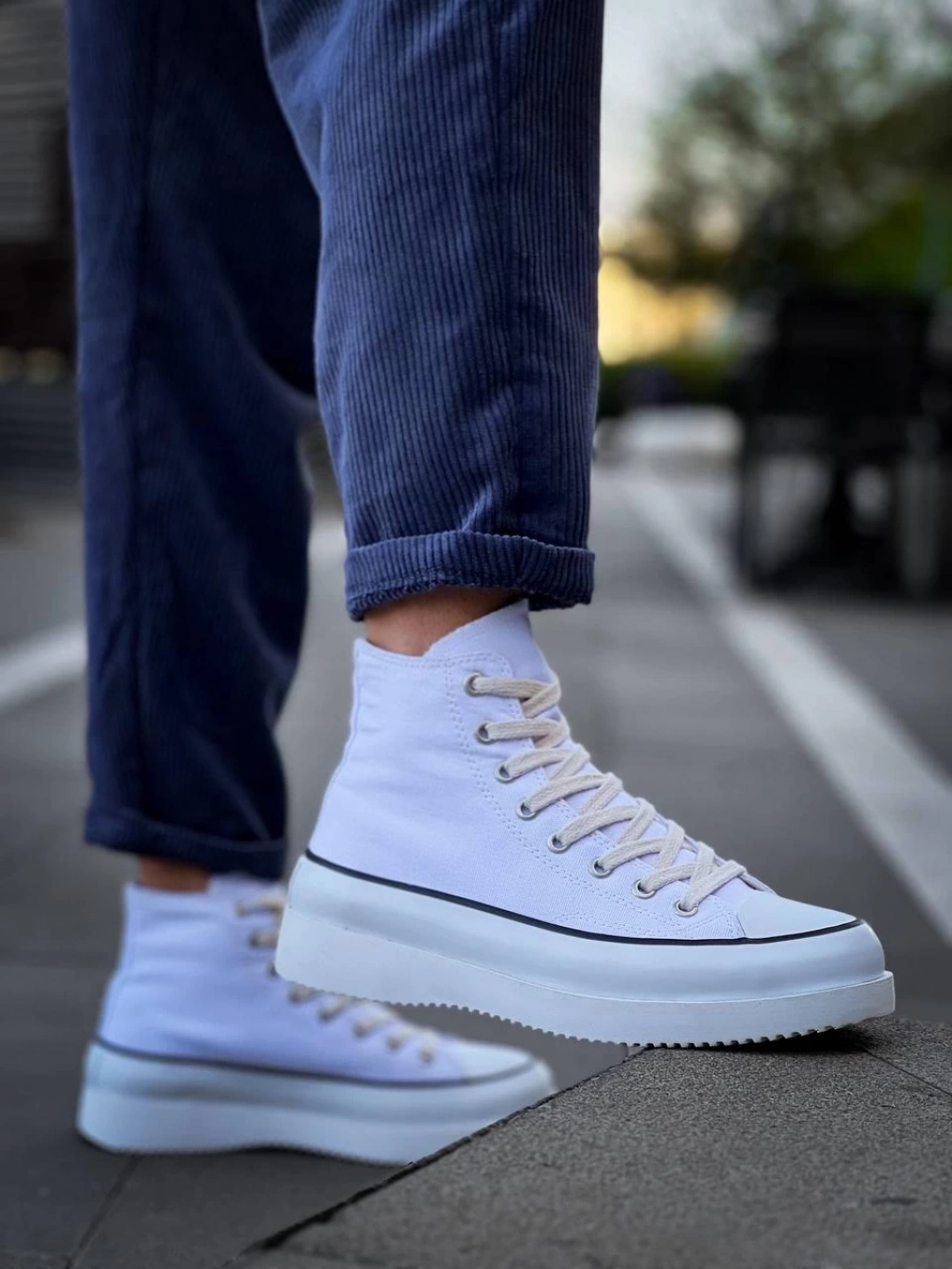 • KB-CX-3 Kuback Uzun Beyaz Keten Beyaz Yüksek Taban Spor Ayakkabı