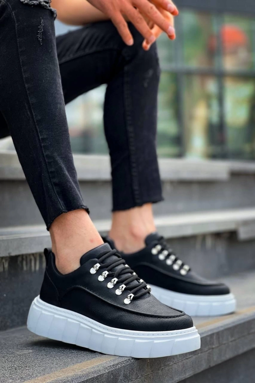 KB-X10 Kuback Siyah Cilt Beyaz Yüksek Taban Günlük Spor Ayakkabı