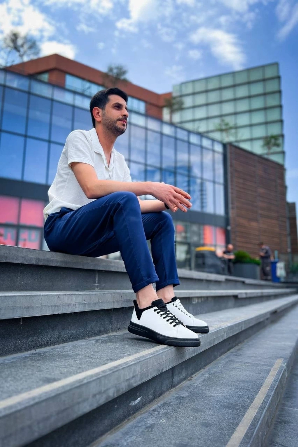 • KB-X204 Kuback Beyaz Siyah Keten Siyah Yüksek Taban Günlük Erkek Spor Ayakkabı