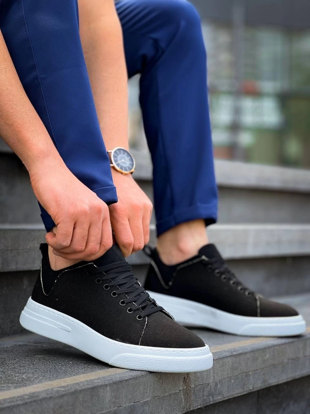 • KB-X204 Kuback Siyah Keten Beyaz Yüksek Taban Günlük Erkek Spor Ayakkabı