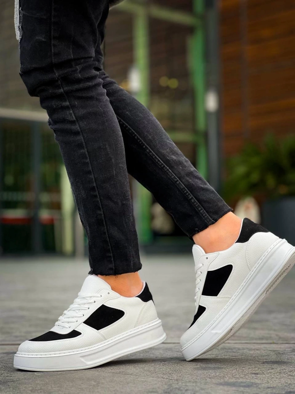 KB-X8 Kuback Beyaz Siyah Cilt Yüksek Taban Günlük Spor Ayakkabı