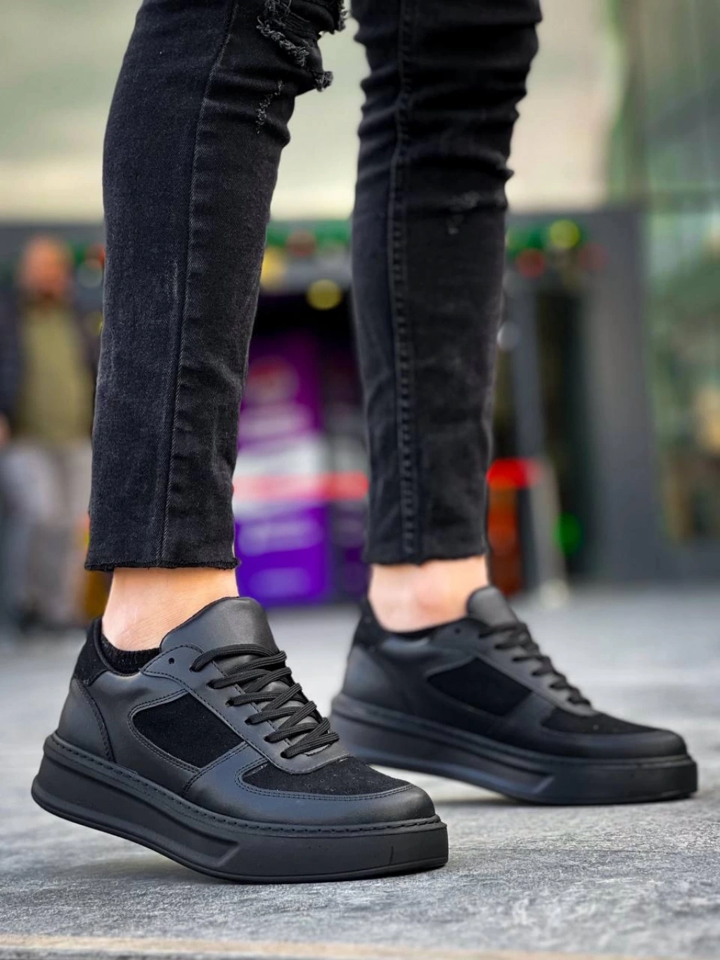 • KB-X8 Kuback Siyah Cilt Siyah Süet Detaylı Siyah Yüksek Taban Günlük Spor Ayakkabı