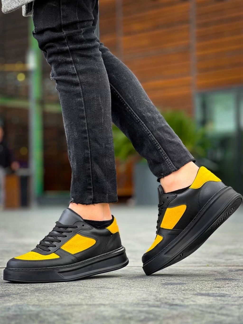 • KB-X8 Kuback Siyah Sarı Cilt Yüksek Taban Günlük Spor Ayakkabı