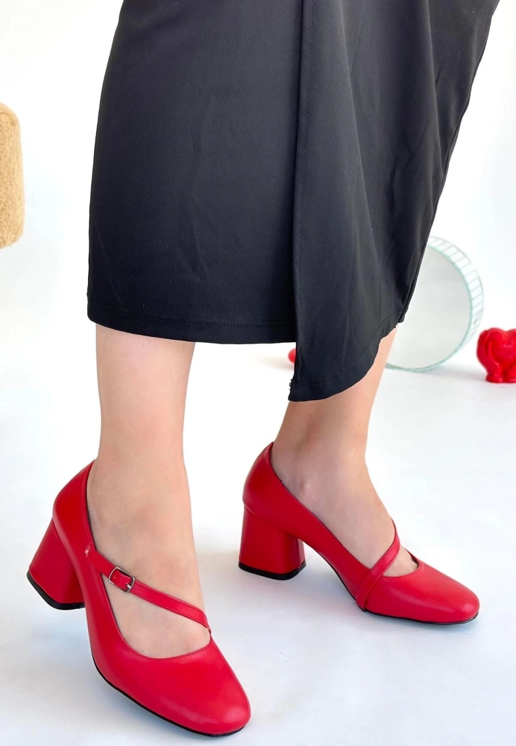 • Kier Kırmızı Cilt Topuklu Ayakkabı