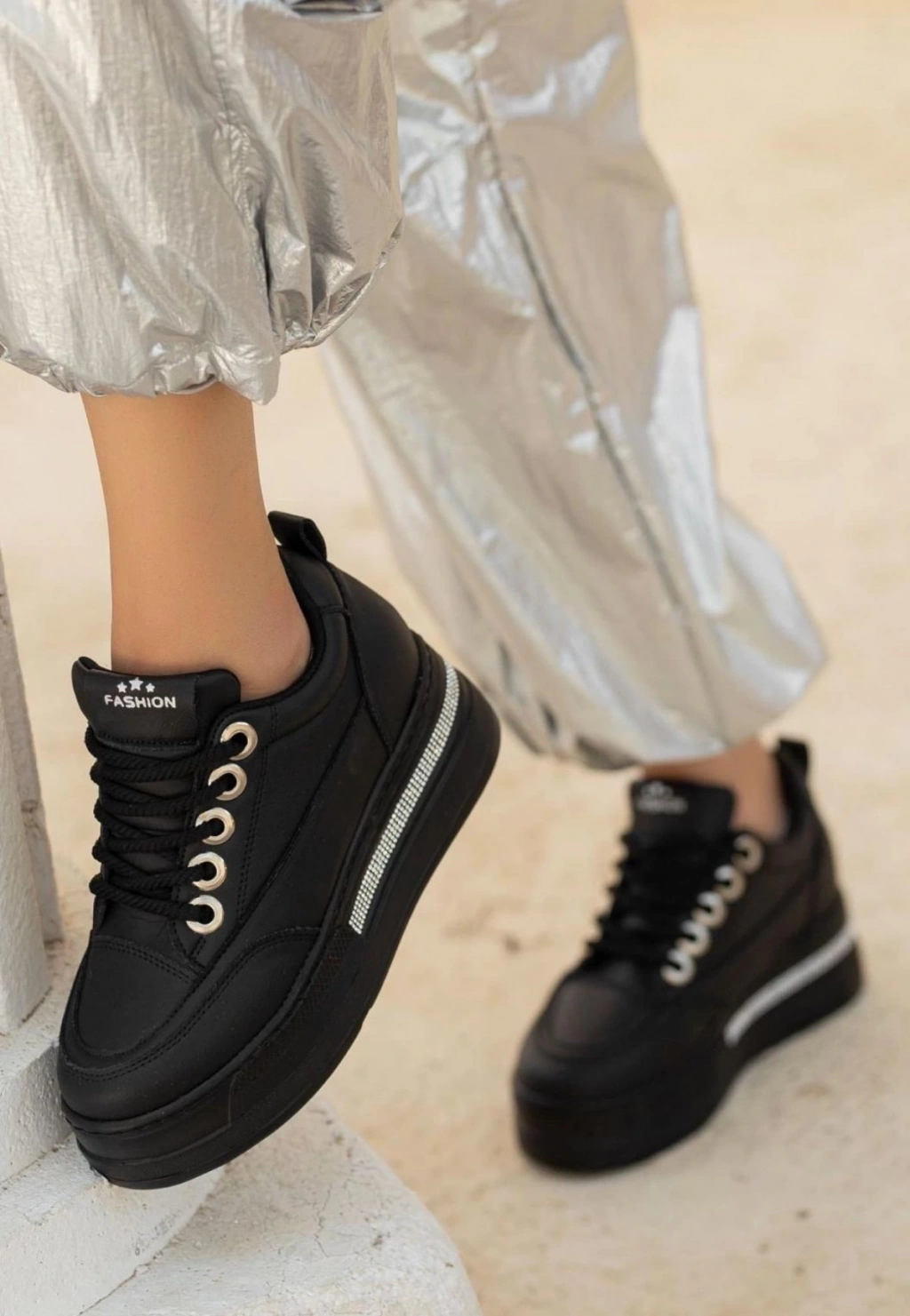• Lulu Siyah Cilt Bağcıklı Spor Ayakkabı