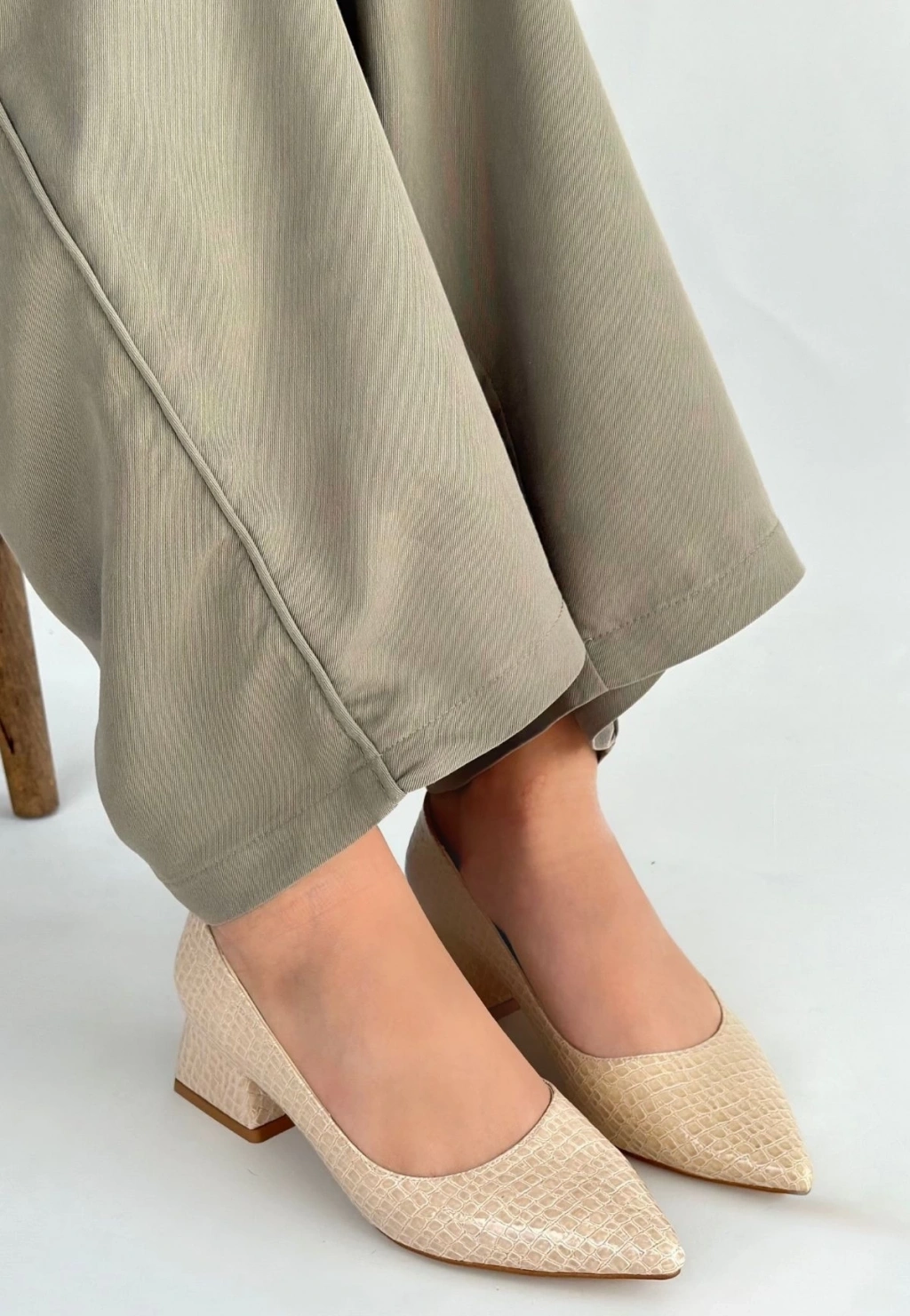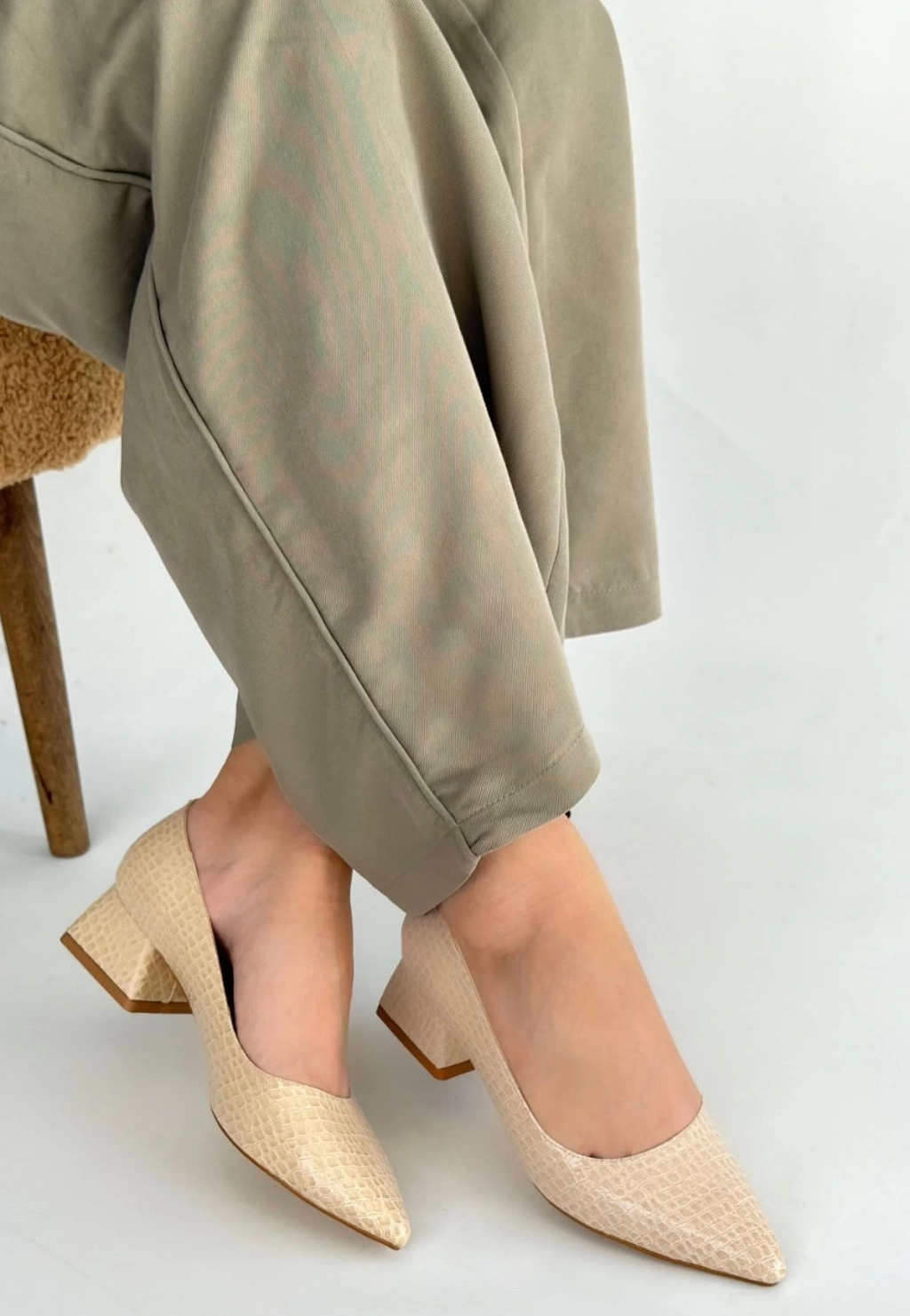 • Meort Bej Rugan Topuklu Ayakkabı