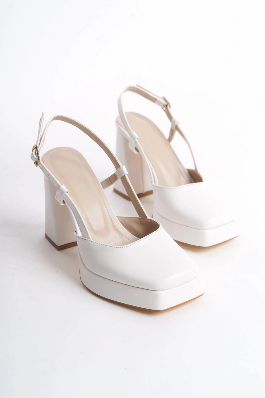 • Mety Beyaz Cilt Topuklu Ayakkabı