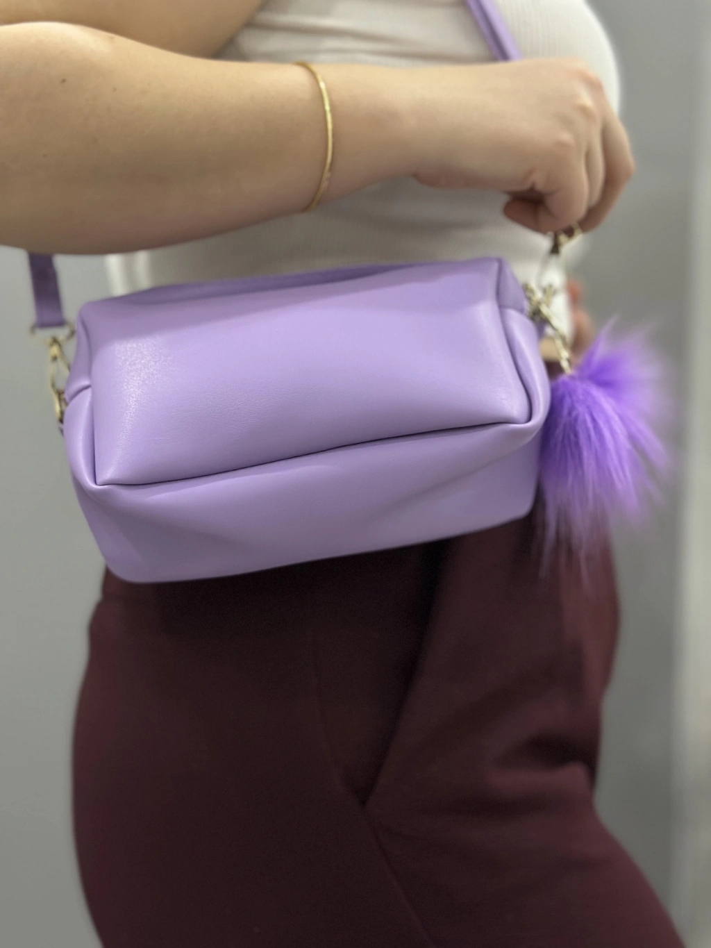 Şıklığı ve kullanışlılığı bir arada sunan Ponpon Mor Cilt Çanta, tarzınızı tamamlayacak harika bir seçenek.