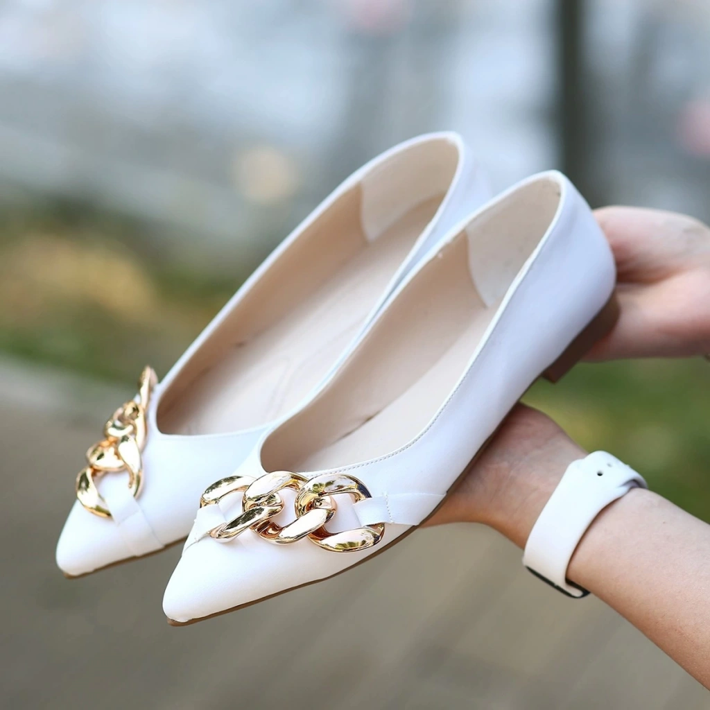 • Popi Beyaz Cilt Zincirli Babet Ayakkabı