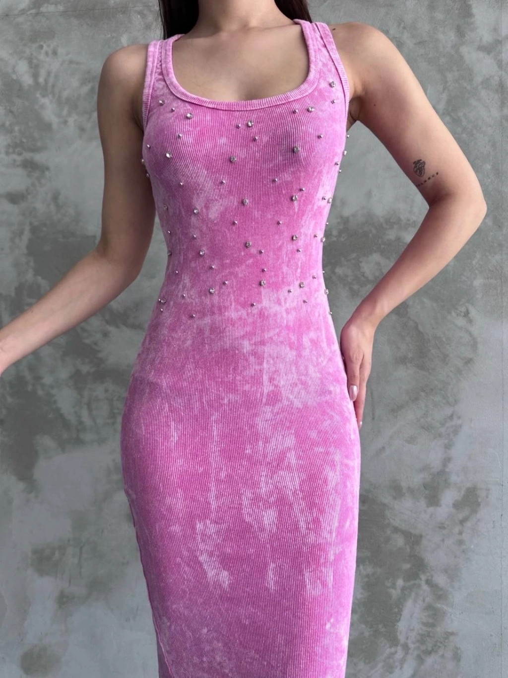Şıklığı ve zarafeti aynı anda yaşamak isteyen kadınlar için ideal bir seçim olan Taşlı Askılı Elbise, gardırobunuzun vazgeçilmezi olmaya aday!