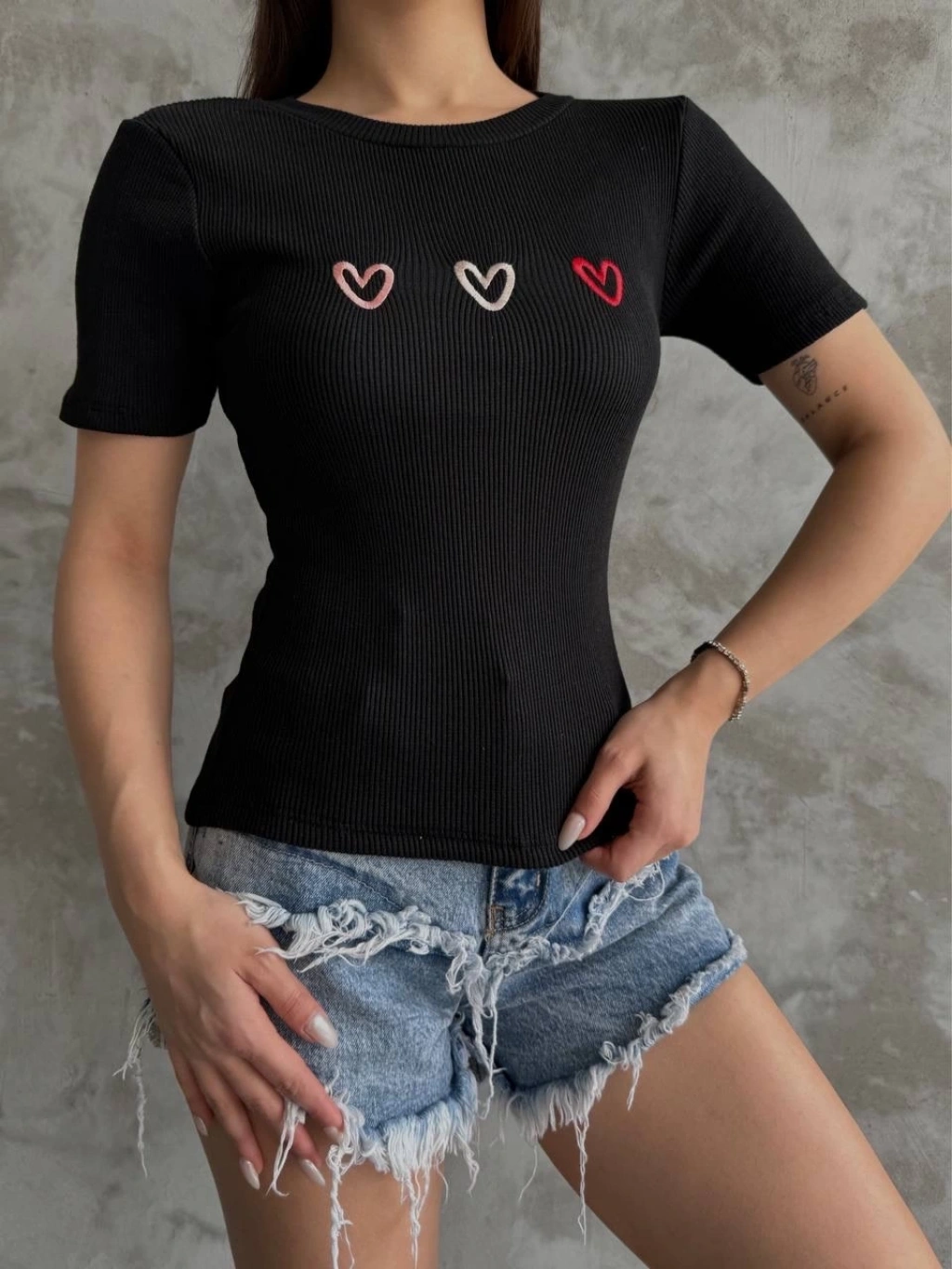 KAZAX markası kalitesiyle öne çıkan üçlü kalp nakışlı bluz, şıklığı ve zarafeti bir arada sunar.