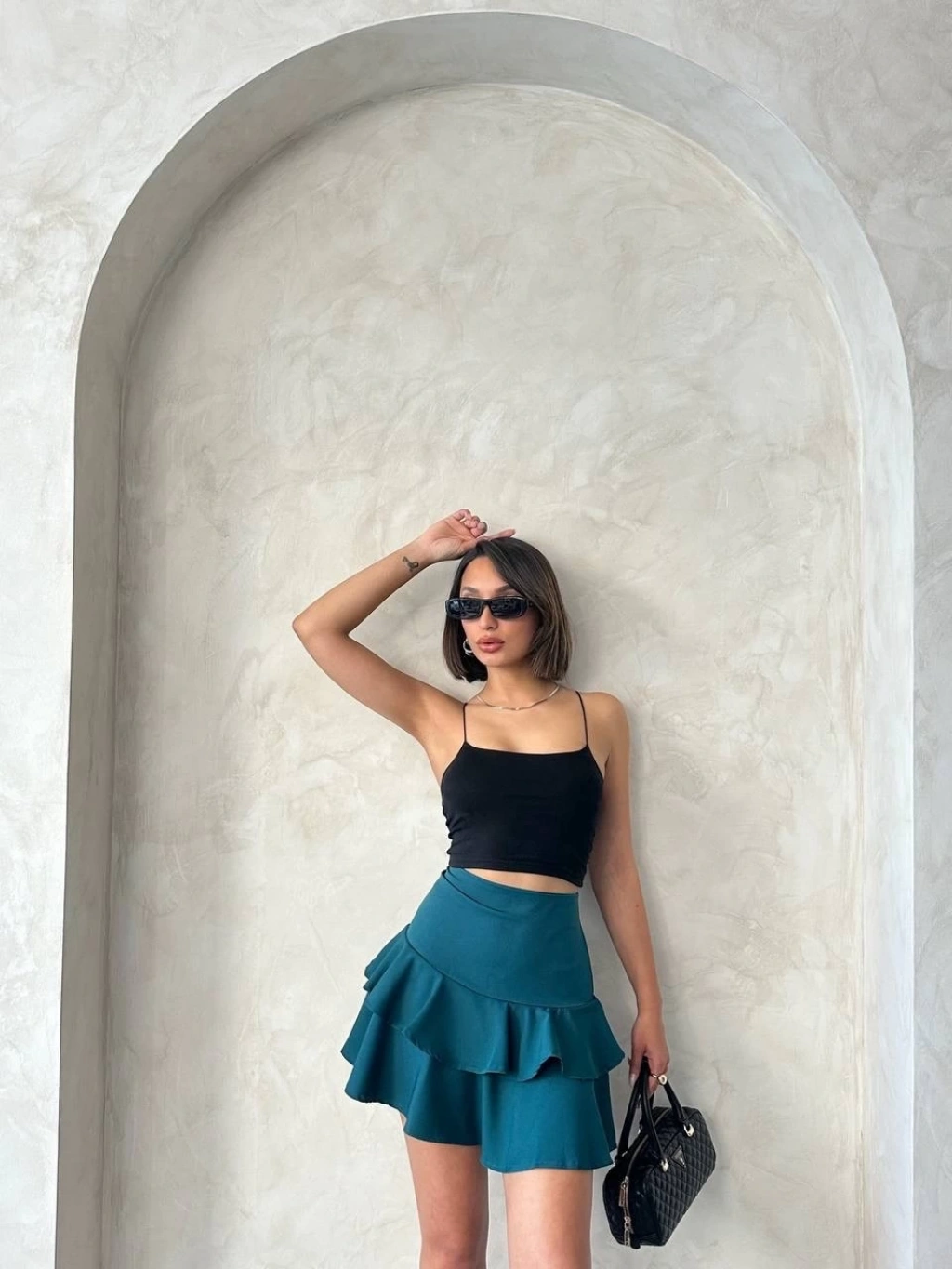 Bu şık ve göz alıcı yeşil eteği günlük şıklığınızda veya özel günlerde tercih edebilir, tarzınıza şıklık katabilirsiniz.